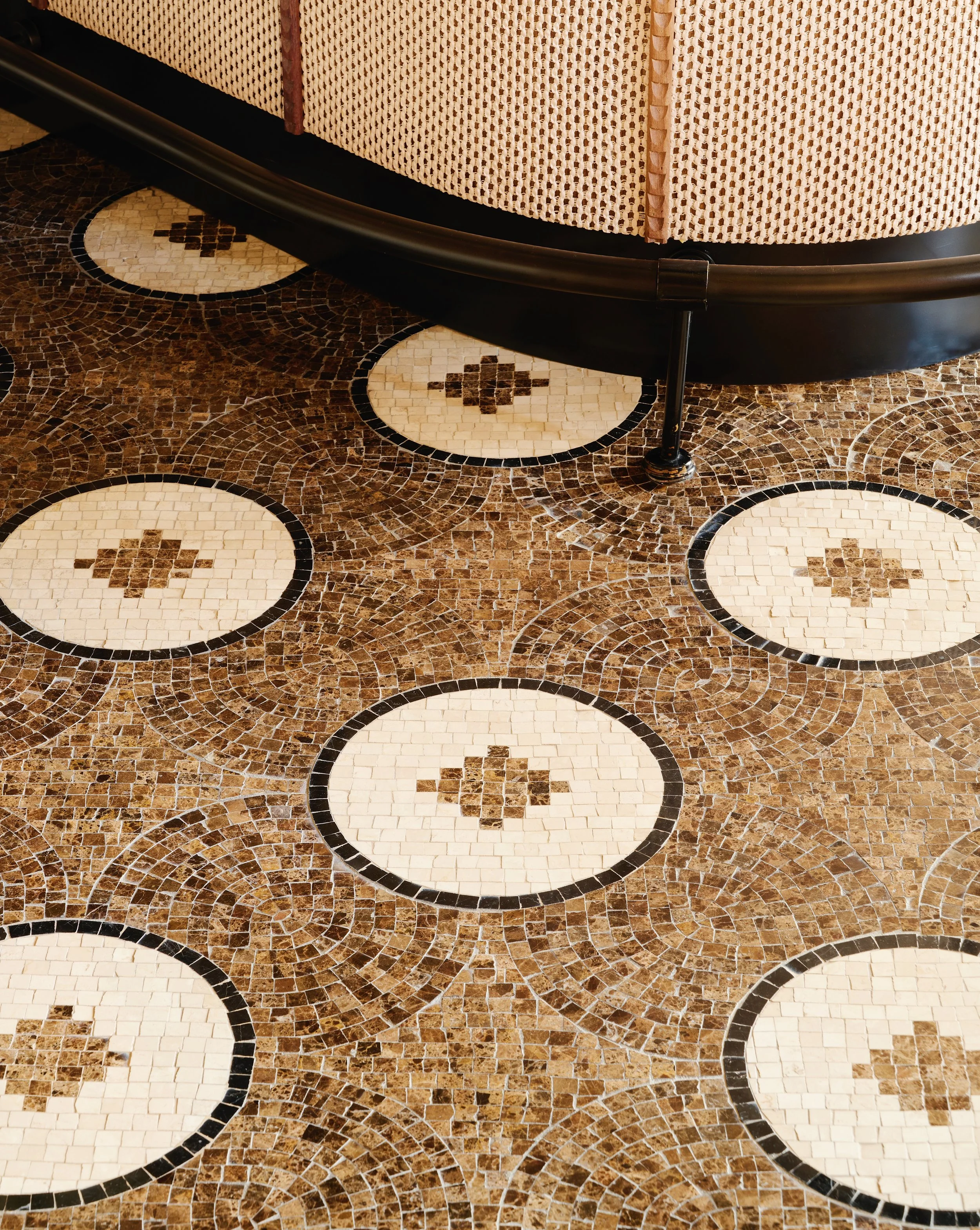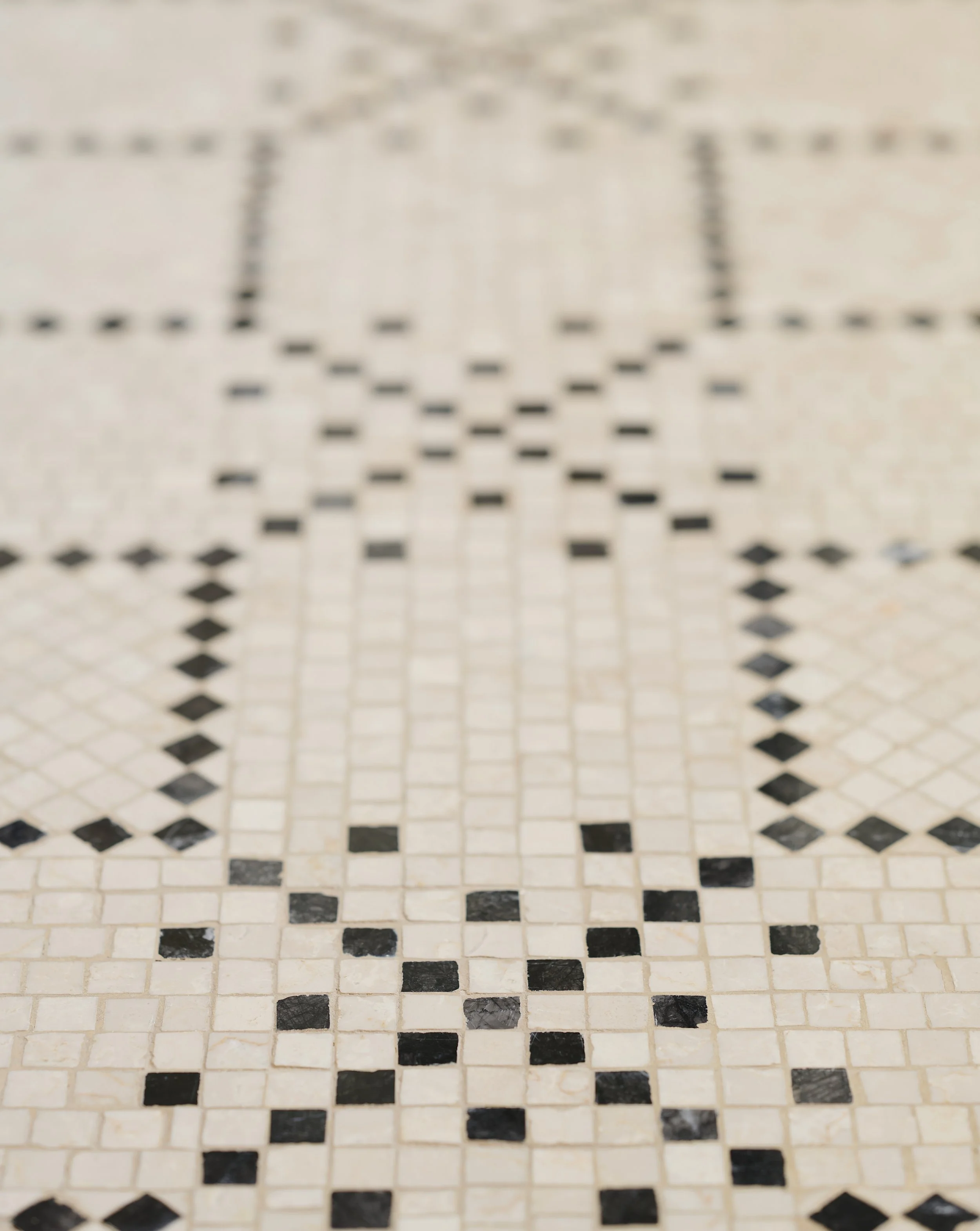At Royal Mansour Tamuda Bay, mosaics are woven through the design, inspired by the Roman history of this coastline. Ancient Roman settlements once lined these shores, their stories left behind in patterned stone. We drew on that heritage, placing mosaics across courtyards, spas and suites. We also took this for inspiration for all the floors but created new patterns.