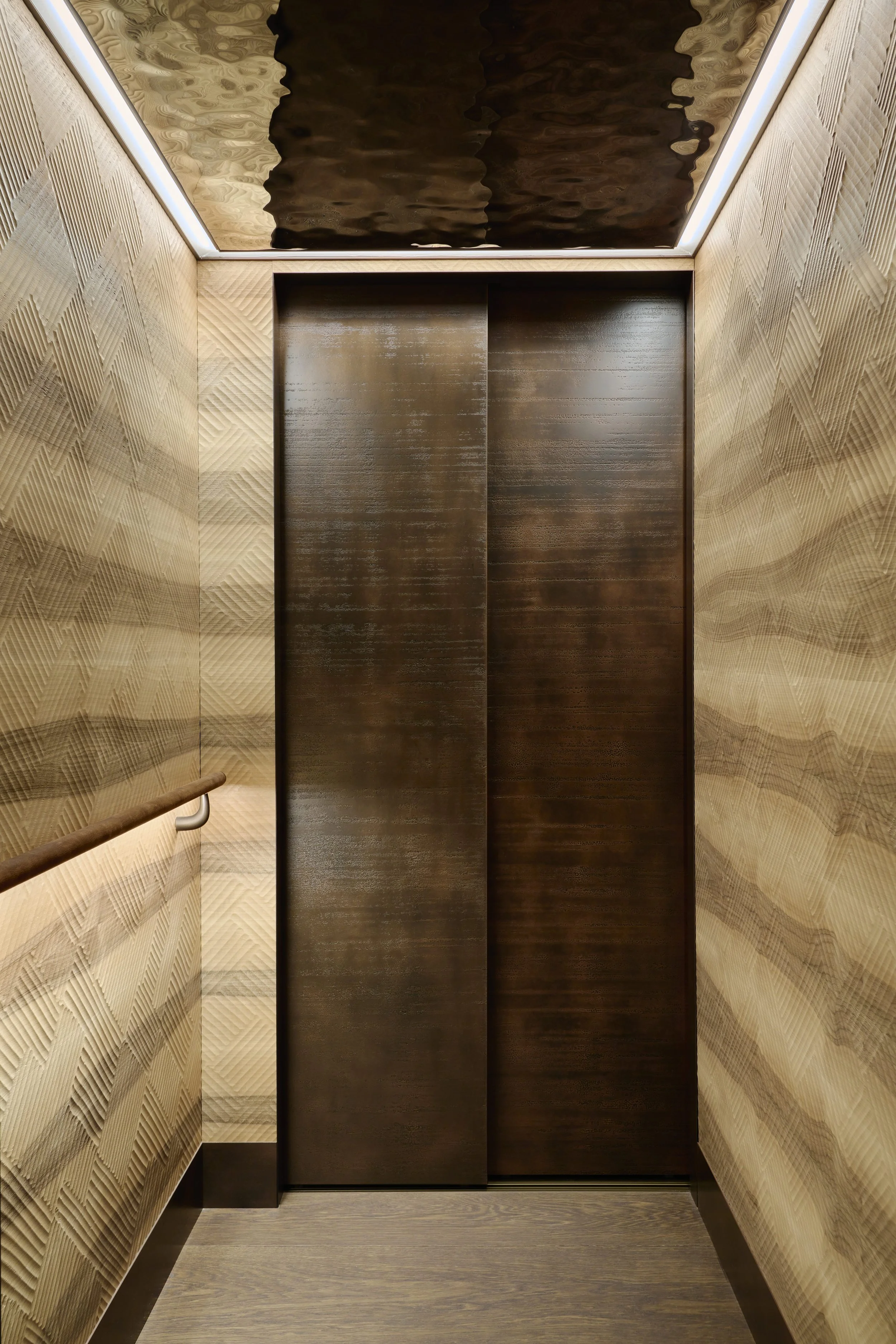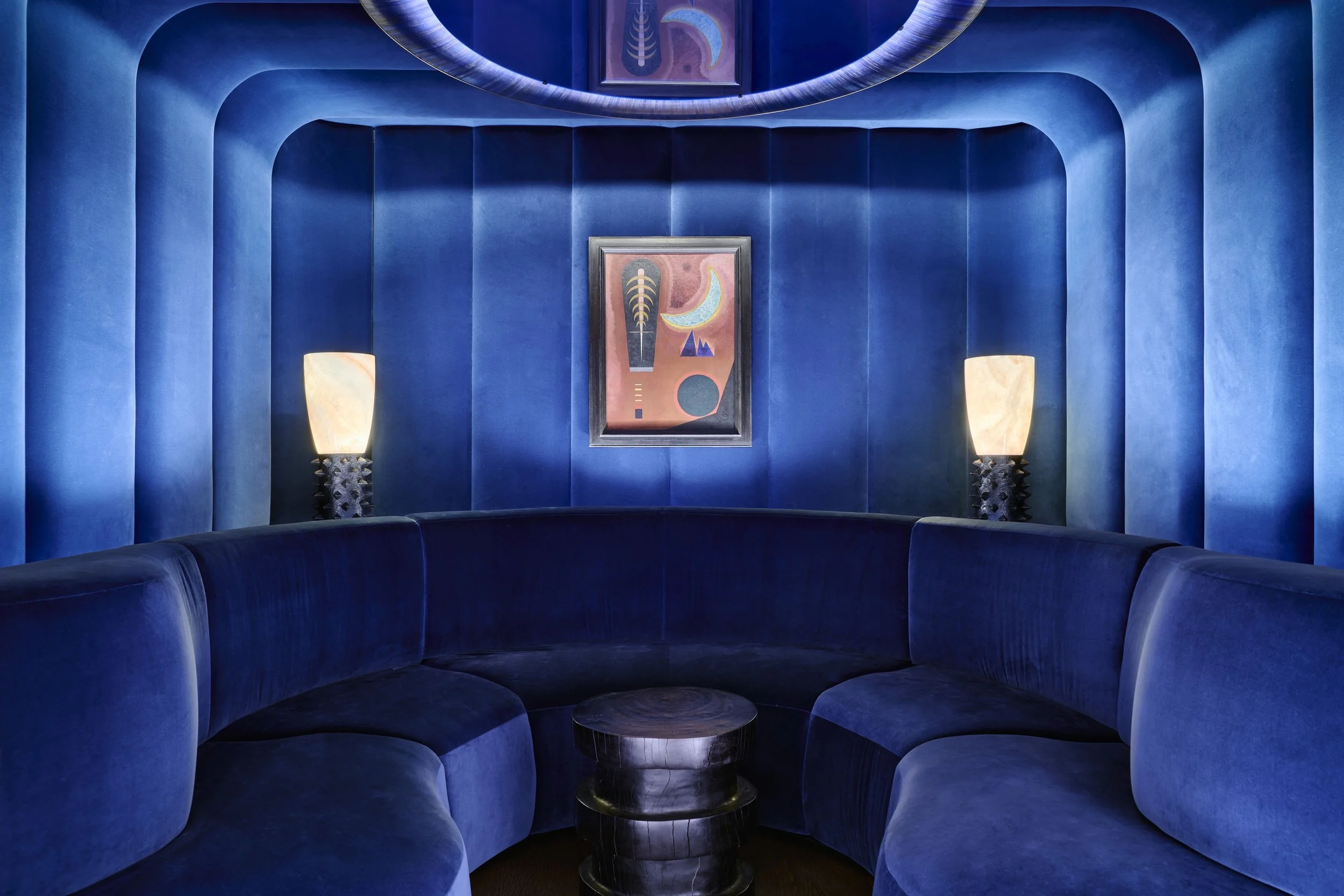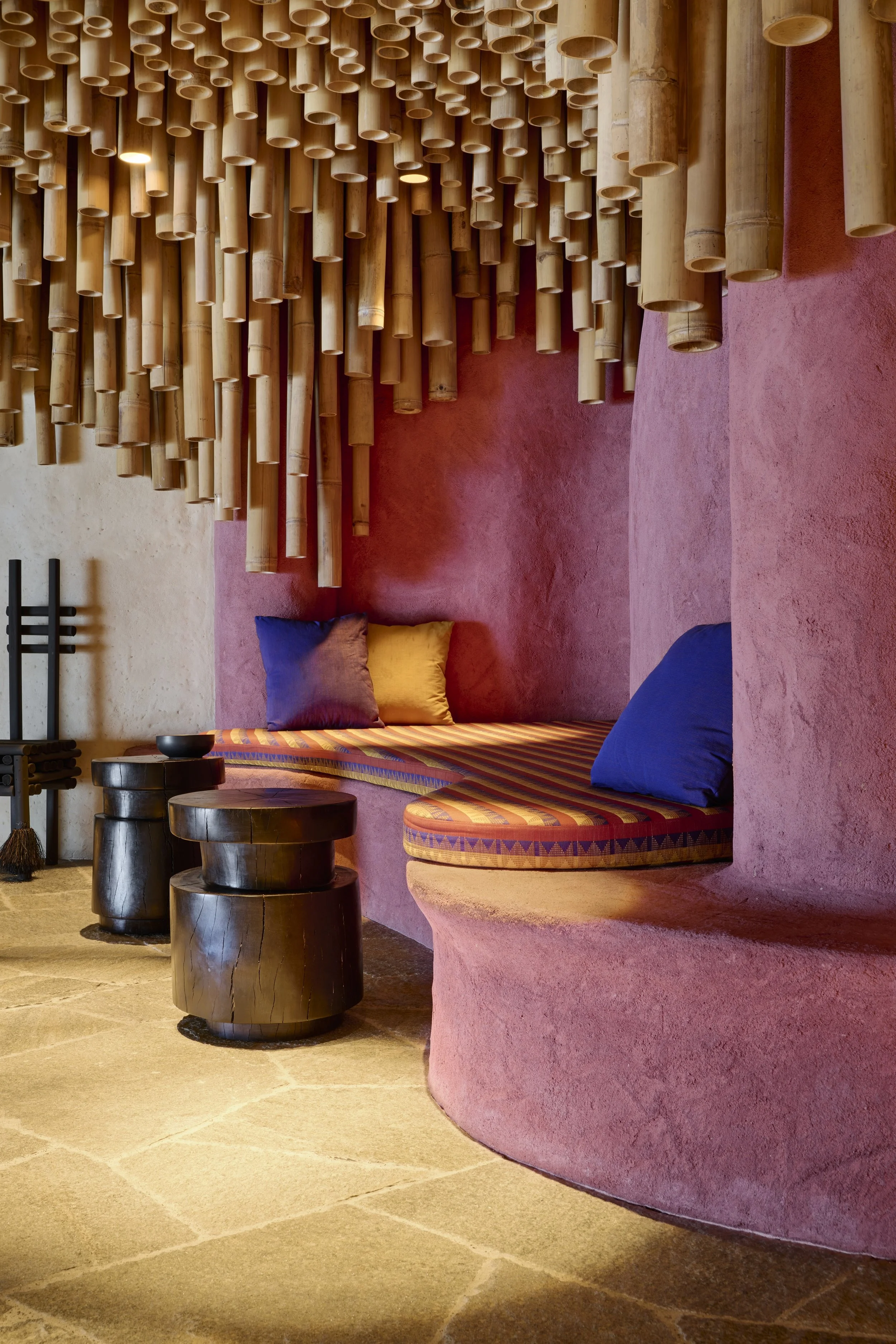 Across the compound, spaces are conceived to regenerate, think, and play. An indoor outdoor pool sits beneath an undulating bamboo canopy, the basement becomes a discotheque and games room, and intimate alcoves invite reflection. Lighting by L’Observatoire International calibrates the glow from morning through night, while pieces by makers including Sanaa Gateja deepen the layered narrative. Even the stair is treated as a moment of artistry, its liquid metal cladding catching light and a hand stitched leather rail softening the touch. Considered and collected, the home is a catalyst for cultural exchange and was featured in Architectural Digest for its collaborative spirit.