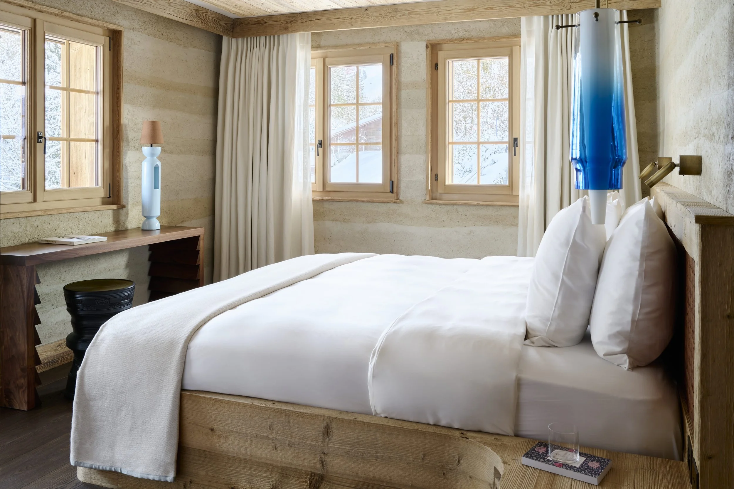 Set in Gstaad, this private residential complex was created in close collaboration with architect Francis Kéré, creative director Nachson Mimran, and Swiss master builders Chaletbau Matti. Our brief was to spotlight art and design from Africa and the African diaspora within a classic alpine envelope. Interiors are grounded in natural materials and thoughtful craft, from carved timber and rammed earth to a circular hearth for gathering and a staircase shaped with the generosity of a baobab. Every textile, artwork, and piece of furniture was selected for character and provenance, so guest rooms feel warm, textured, and quietly meaningful.